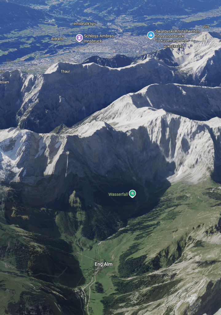 In Alpe Eng gab es dann noch Kaffee und Kuchen. Erst zu Hause habe ich festgestellt, dass direkt auf der gegenüberliegenden Seite der Bergkette schon Innsbruck liegt.