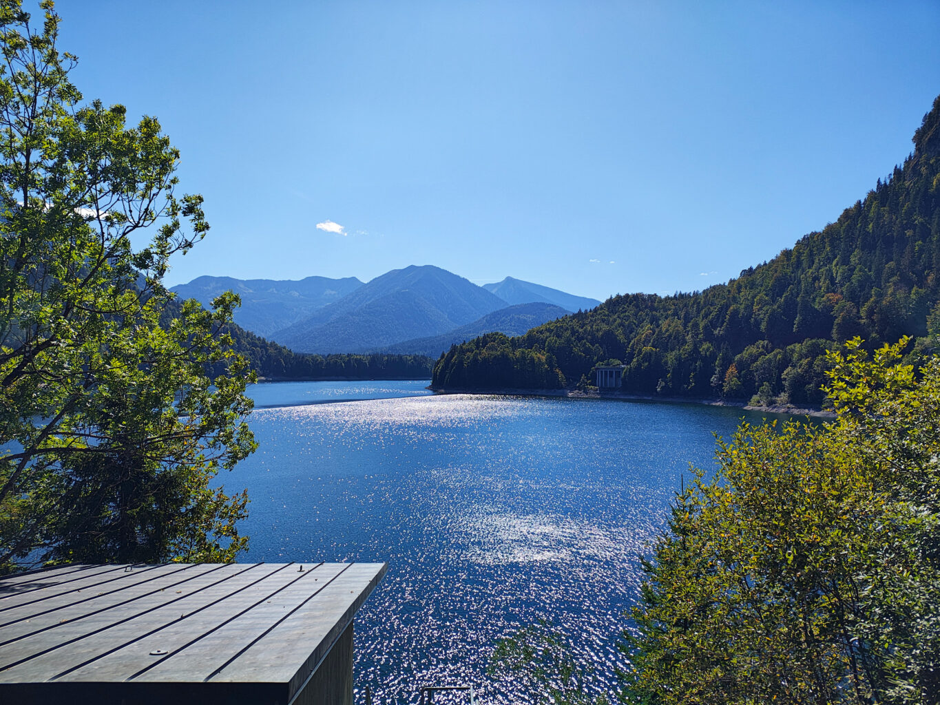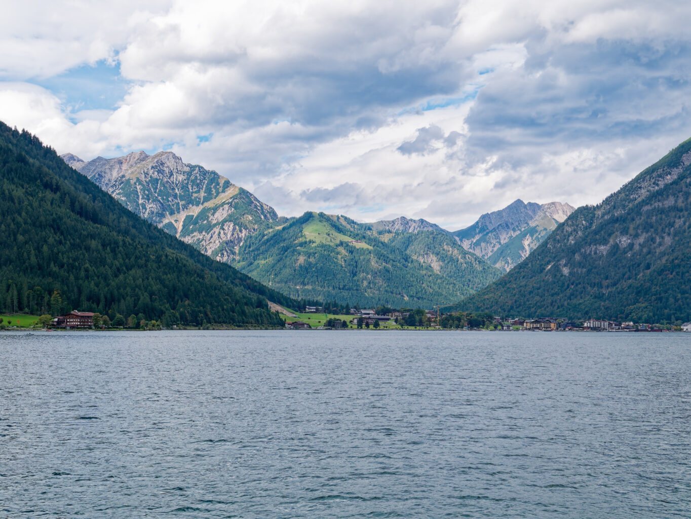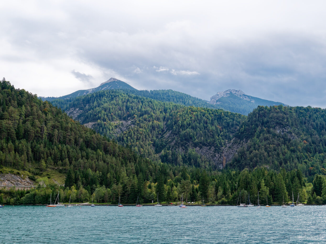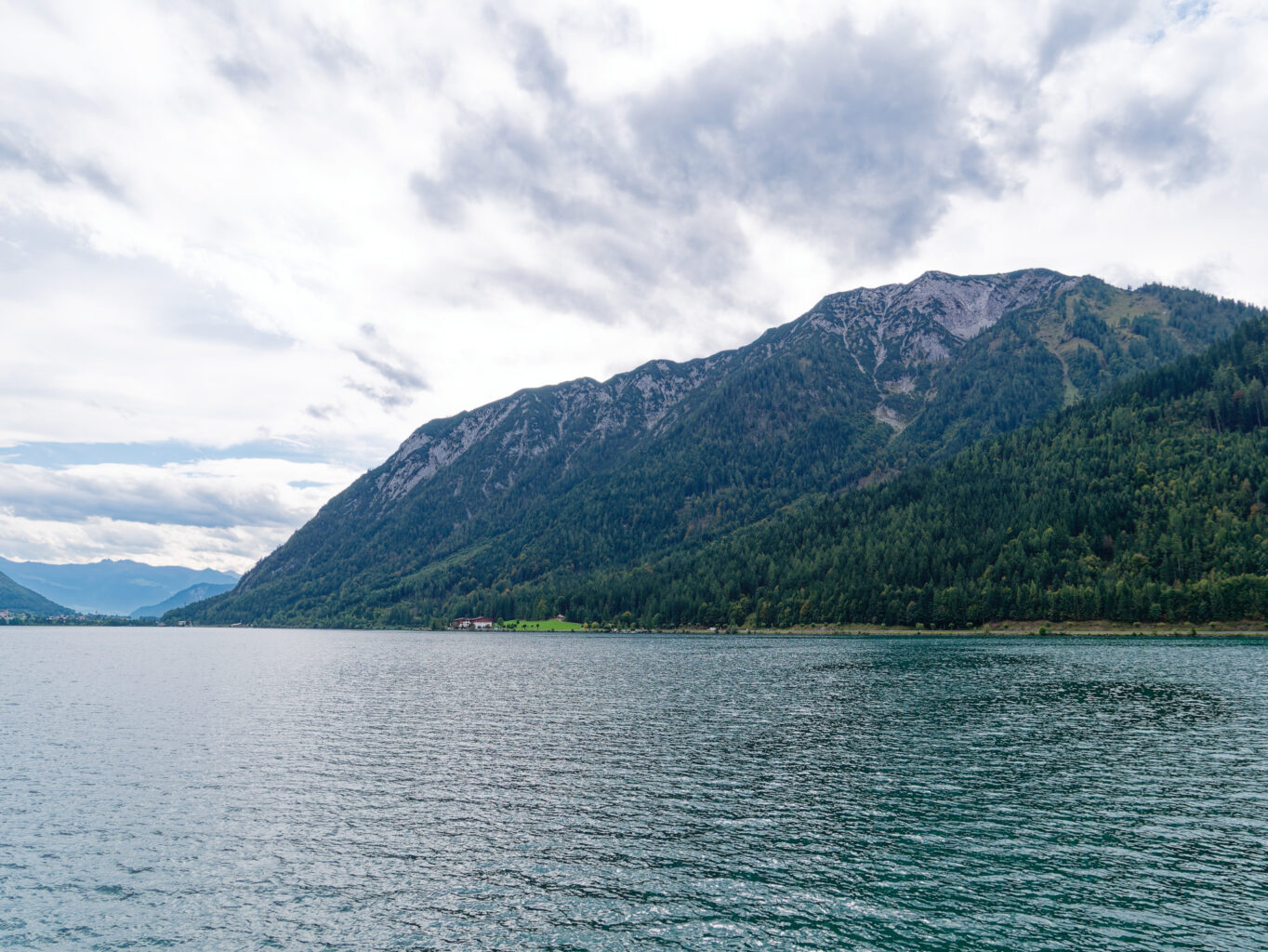 Nicht weit von der deutsch-österreichischen Grenze liegt der Achensee, der größte See in Tirol. Von uns aus an München vorbei fährt man zuerst am Sylvensteinspeicher vorbei. Bei schönem Wetter war die ganze Staumauer, über die man fährt, von Bikern besetzt. Wir konnten erst etwas später parken und die Aussicht genießen.