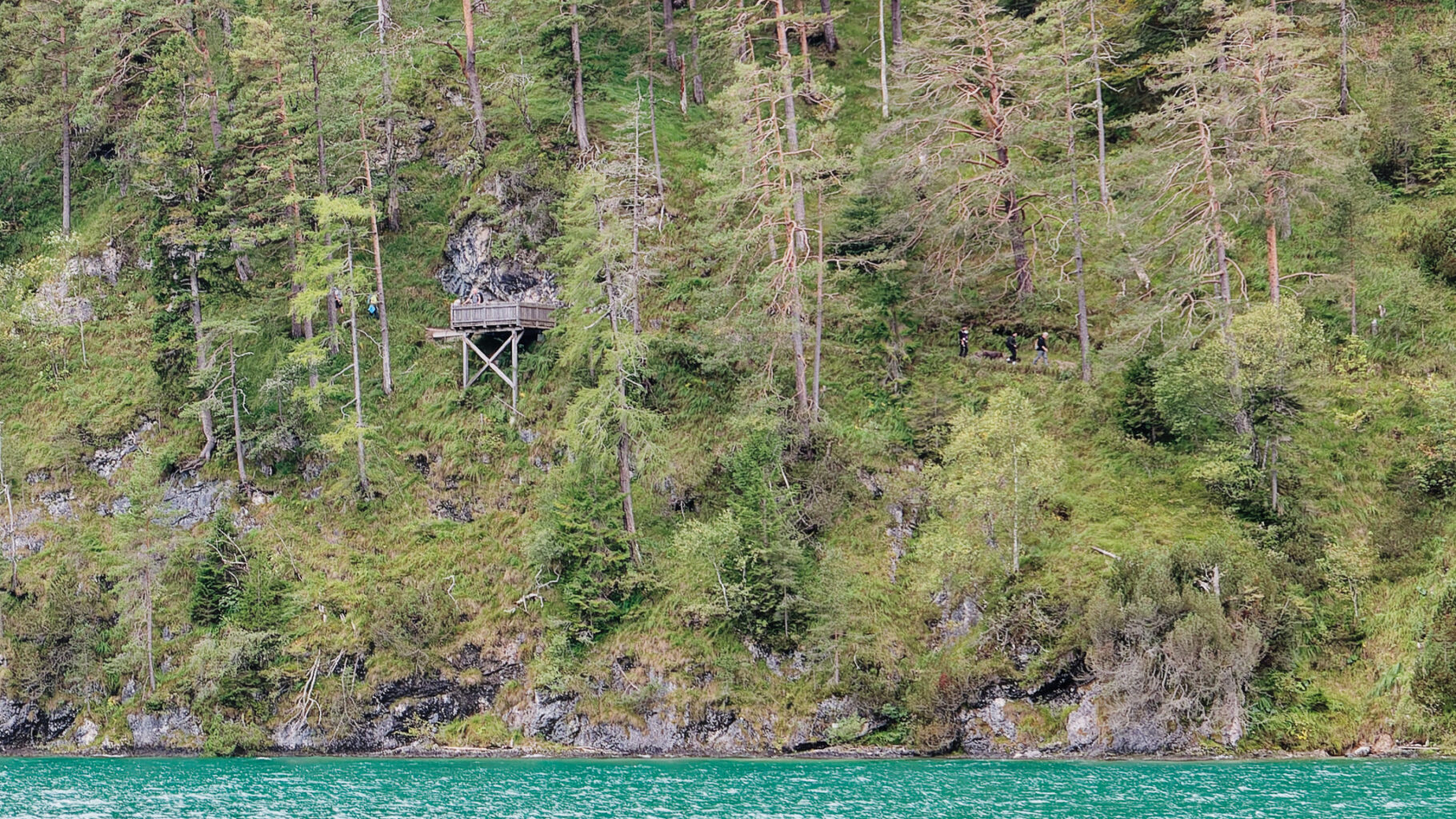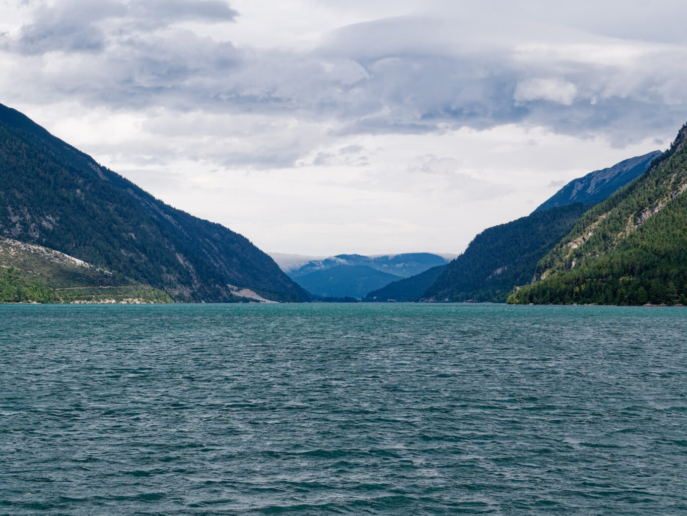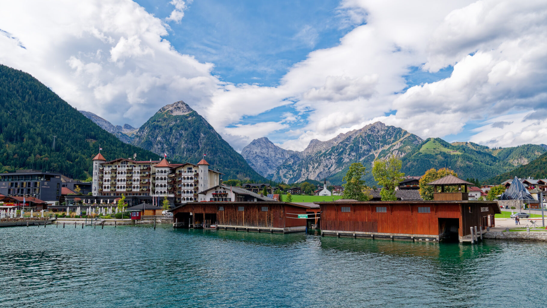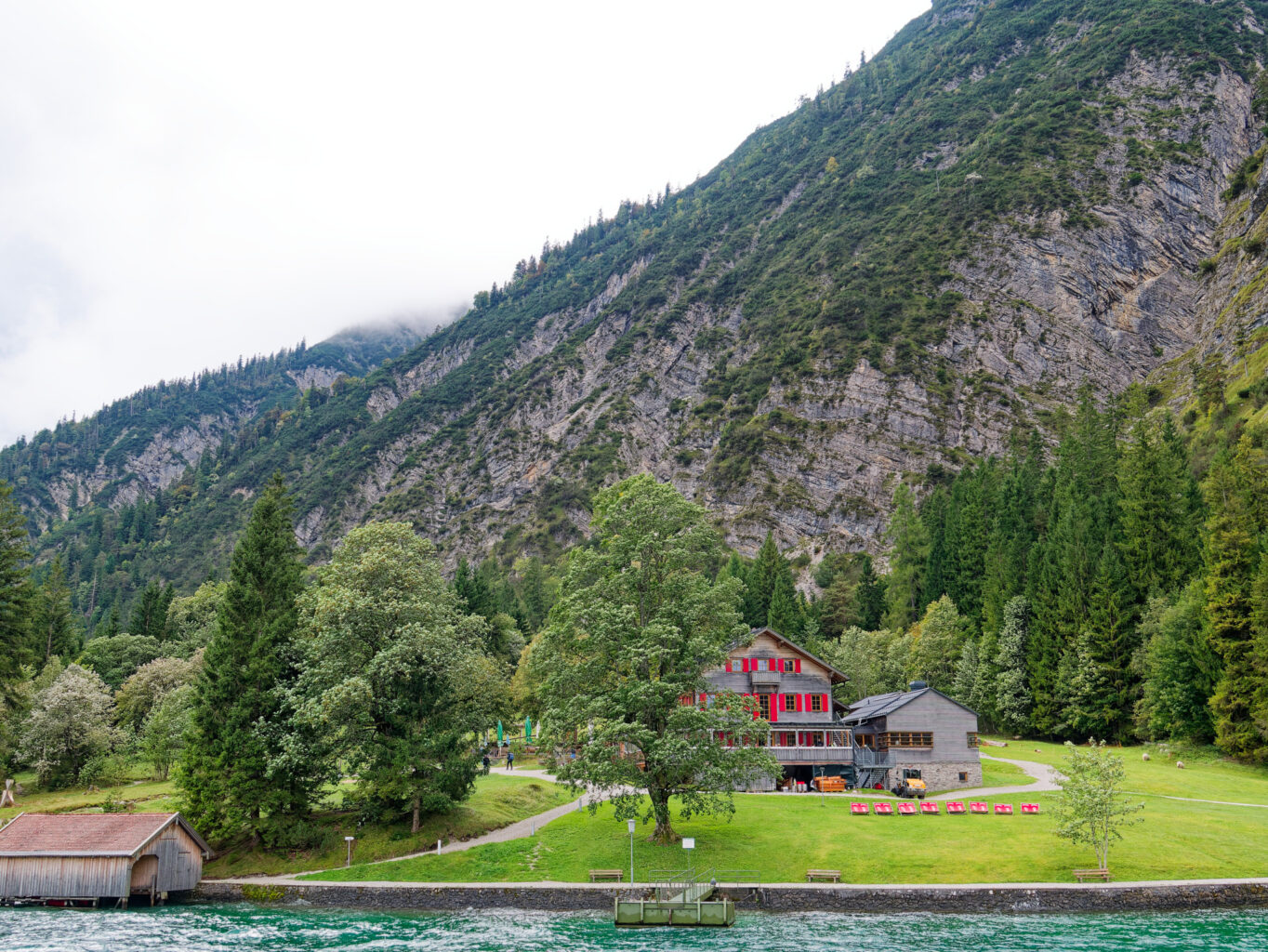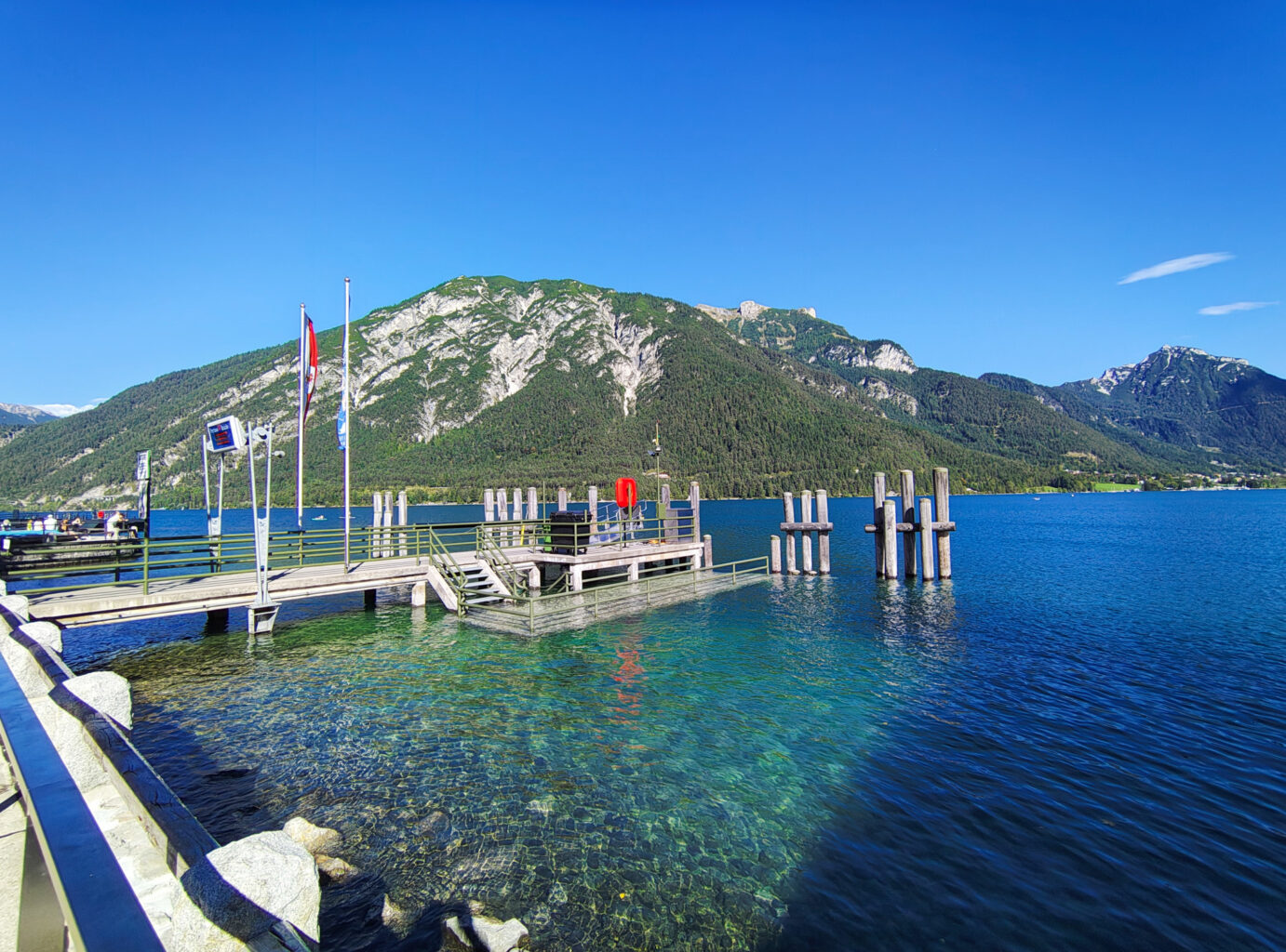 Nicht weit von der deutsch-österreichischen Grenze liegt der Achensee, der größte See in Tirol. Von uns aus an München vorbei fährt man zuerst am Sylvensteinspeicher vorbei. Bei schönem Wetter war die ganze Staumauer, über die man fährt, von Bikern besetzt. Wir konnten erst etwas später parken und die Aussicht genießen.