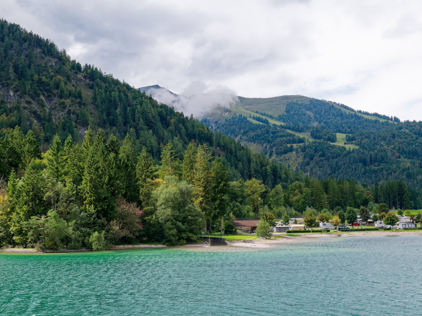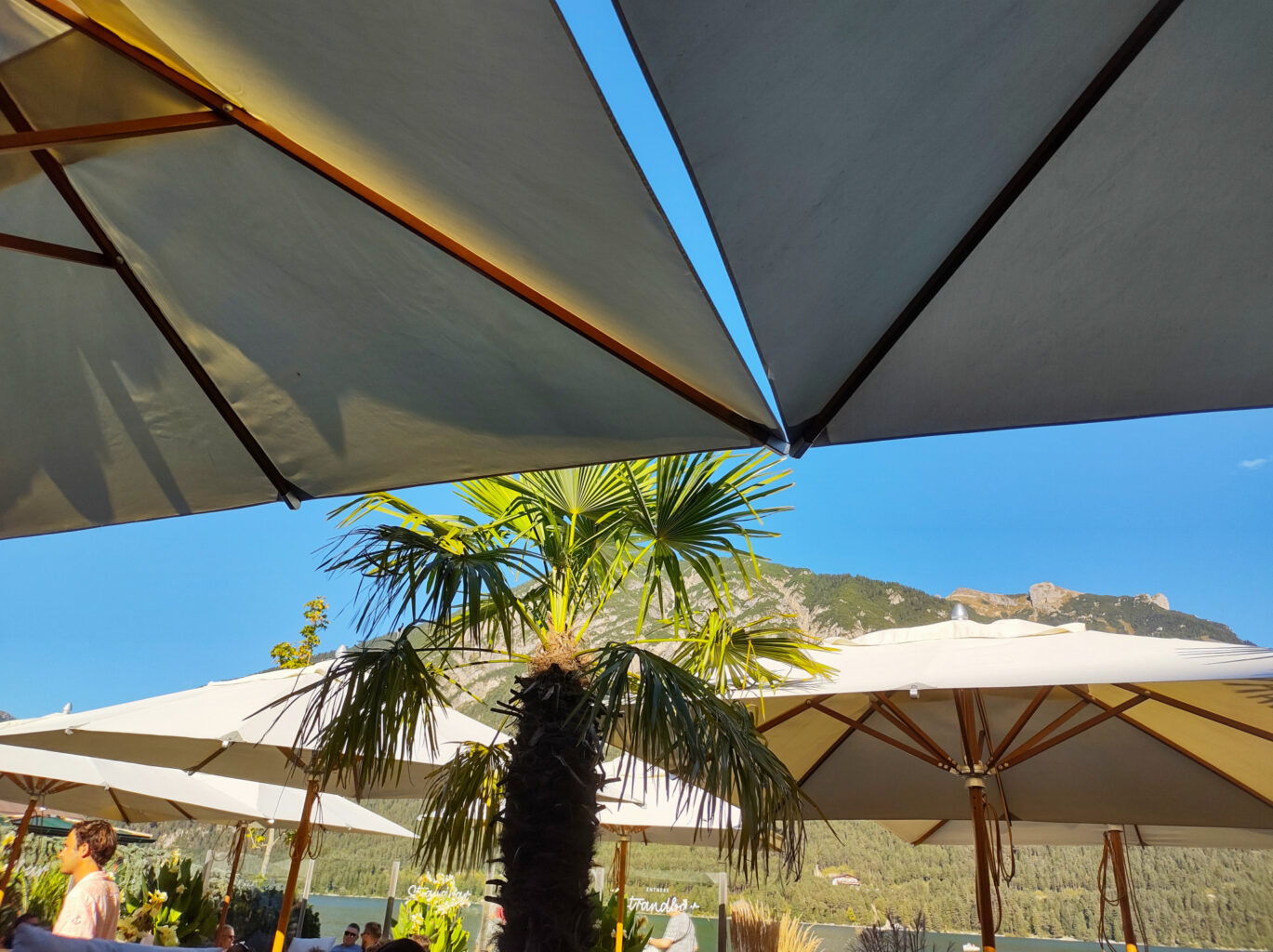 Es war schon etwas surreal, unter Palmen in Österreich zwischen Bergen am See zu sitzen. Das sollte leider auch unser letzter Besuch in der Strandbar gewesen sein. Offenbar werden zum Herbstanfang alle Außenanlagen (nicht nur in der Bar) geräumt und sind ab dann geschlossen.