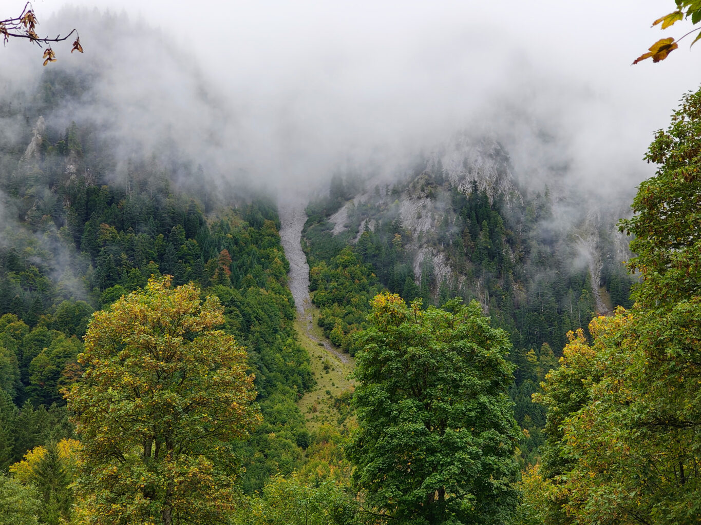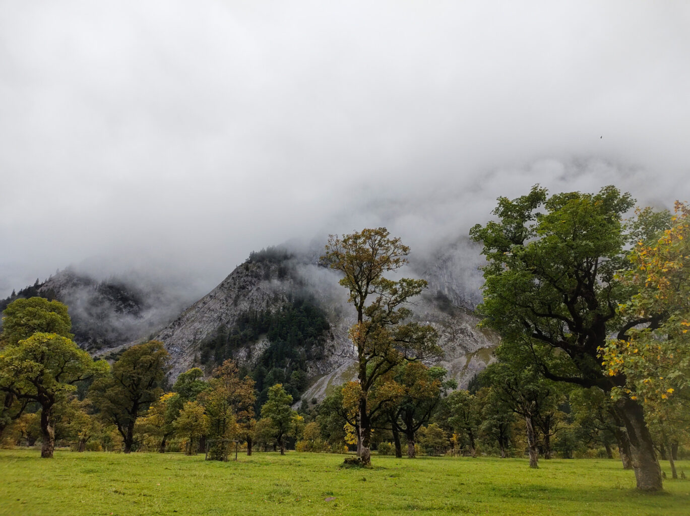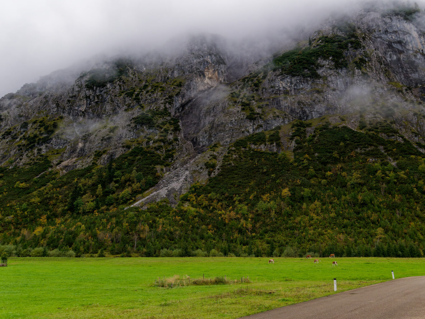 Am Ende des Riß liegt der beeindruckende Ahornboden mit alten Bergahorn-Beständen, in denen Kühe ohne Zaun frei grasen. Zwischen den Bergen sind nur die Kuhglocken zu hören.