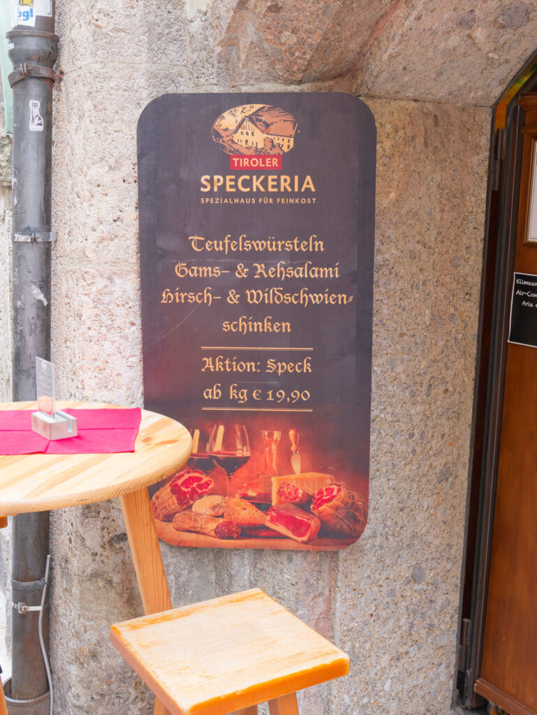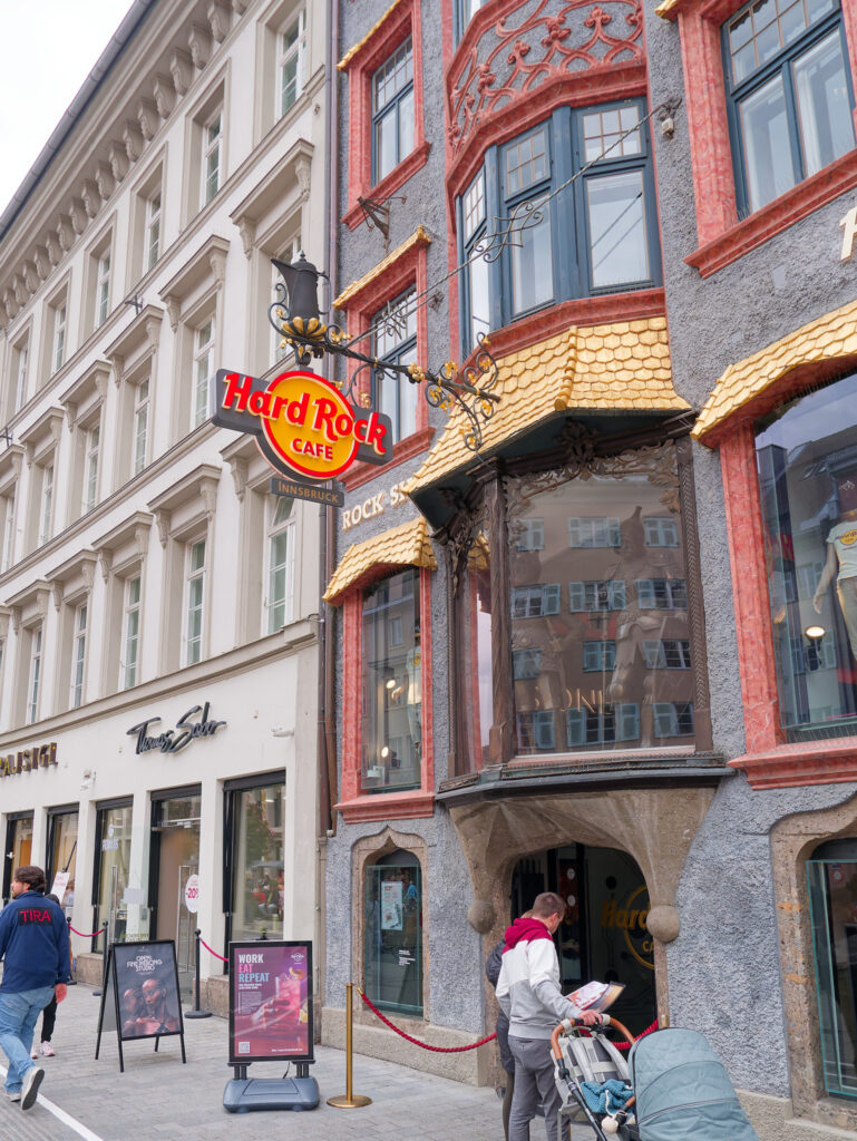 Bei dem Schild links mussten wir erst einmal forschen, was Hüferscherzel denn für ein Gericht sein soll. Bisher unbekannt war mir, dass es in Innsbruck auch ein Hard Rock Café gibt.